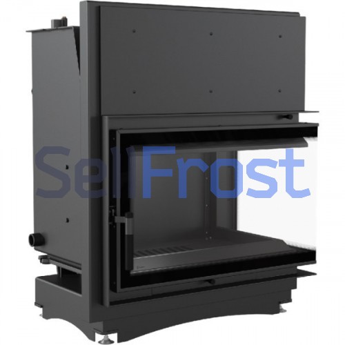 - Угловая топка с цельным Г-образным стеклом, которое придает камину особый шарм и позволяет наслаждаться видом пламени со всех сторон.